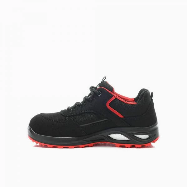 Die modische Farbgebung des HANNAH XXTL black-red Low ESD S3 sticht auf den ersten Blick heraus. Der lederfreie Sicherheitshalbschuh ist durch seine knallrote Sohle nicht nur ein wahrer Eye Catcher, sondern verfügt auch über verlässliche Sicherheitsmerkmale. Die rutschhemmende PU/PU Laufsohle WELLMAXX TRAINERS LADY bietet auf unsicheren Untergründen einen sicheren Halt und dämpft durch ihren Sohlenkern aus Infinergy® von BASF jeden Ihrer Schritte. Vor Gefahren durch gefährliche Gegenstände am Boden bewahrt Sie der metallfreie Durchtrittschutz und die Stahlkappe schützt Ihre Zehen vor Stoß- und Druckeinwirkungen. Das hydrophobierte Obermaterial aus Mikrofaser und Textilmaterial lässt zudem eine optimale Luftzirkulation zu und wird durch atmungsaktives Textilfutter ergänzt. Der ESD-fähige Sicherheitshalbschuh ist in den Größen 35 bis 42 erhältlich.