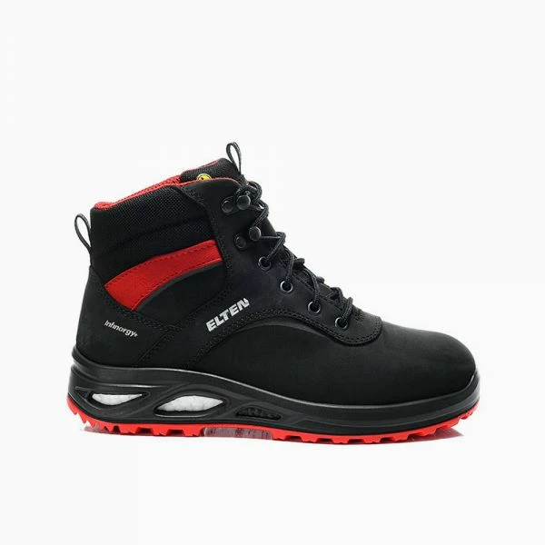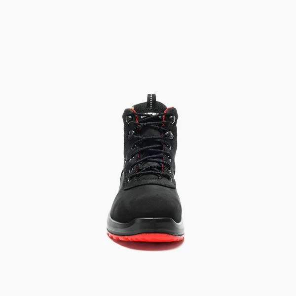 Der HENNY black Mid ESD S3 überzeugt Frauenfüße auf allen Ebenen! Der rot-schwarze Damen-Sicherheitsstiefel aus Nubukleder und hydrophobiertem Textilmaterial CORDURA® sieht sportlich aus, ist robust und bietet ein umfangreiches Sicherheitspaket: Stahlkappe und metallfreie Durchtritthemmung schützen vor Gefahren von oben und unten, die rutschhemmende Laufsohle WELLMAXX TRAINERS LADY sorgt dazu immer für einen sicheren Stand – auch auf rutschigen Untergründen. Der Sohlenkern aus Infinergy® von BASF trägt seinen Teil zur nötigen Portion Tragekomfort bei. Das Hightech-Dämpfungsmaterial gibt einen Großteil der beim Laufen aufgewendeten Energie wieder an die Trägerin zurück, das schont die Gelenke und hält die Füße länger fit. Das atmungsaktive Textilinnenfutter lässt die Luft im Schuh zirkulieren – bestes Klima für Frauenfüße garantiert. Der S3-Stiefel ist ESD-fähig und in den Größen 35 bis 42 zu haben.