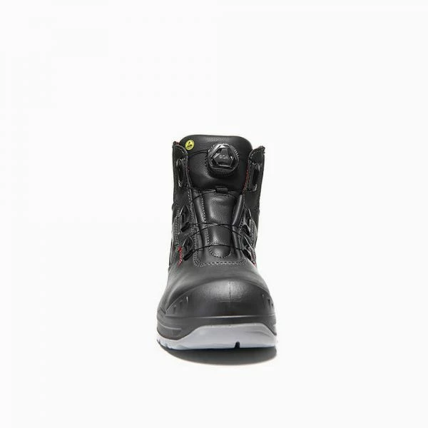 Schnell geschlossen und rundum sicher: Mit dem LENA BOA® Mid ESD S3 bekommt frau das Komplettpaket in Sachen Sicherheit und Komfort. Der Drehverschluss des BOA® Fit Systems ist im Handumdrehen geschlossen und gibt dem Fuß besten Halt. Der robuste Sicherheitsstiefel von Elten ist darüber hinaus mit dem strapazierfähigen Obermaterial Rindleder ausgestattet und wird zudem mit einem PU-Spitzenschutz vor Abnutzung an der Schuhspitze bewahrt. Die metallfreie Durchtritthemmung des ESD-fähigen Sicherheitsprofis sorgt für zuverlässigen Schutz vor möglichen Gefahren, die von unten in die Sohle eindringen könnten. Mit der ESD-zertifizierten Rutschhemmung ist ein fester Stand garantiert und ein Futter aus Textilmaterial sorgt für einen Fuß, der atmen kann!
