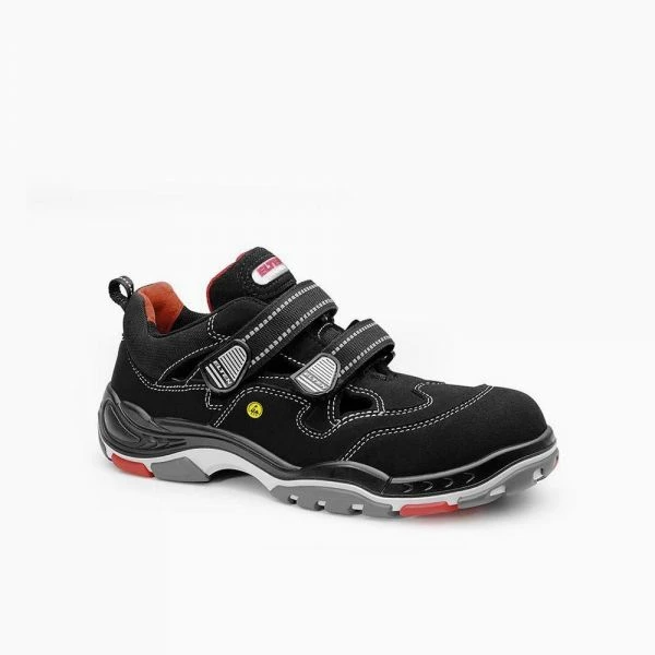 Sie suchen eine leichte, strapazierfähige Sicherheitssandale, die ESD-fähig ist? Lernen Sie den metall- und lederfreien SCOTT ESD S1P kennen! Als typisches Modell der TRAINERS Serie steht dieser Sicherheitsschuh für geringes Gewicht, modische Optik und hervorragenden Tragekomfort. Das Obermaterial ist aus pflegeleichter Mikrofaser und Textilmaterial. Fersenschlaufe und Klettverschluss machen den Einstieg bequem, und das Textilfutter fördert ein angenehmes Schuhklima. Im Sicherheitsschuh SCOTT ESD S1P übernimmt eine Kunststoffkappe den Schutz Ihrer Zehen. Metallfreier Durchtrittschutz gibt bei knienden Tätigkeiten ein Plus an Flexibilität. Reflexmaterial bietet Sicherheit durch bessere Sichtbarkeit. Die TRAINERS Laufsohle bietet nicht nur gute Rutschhemmung auf vielen Untergründen. Die zum Schaft passende Farbgebung ist ein interessanter Hingucker. Die ELTEN Sicherheitssandale SCOTT ESD S1P ist nach der DGUV Regel 112-191 zertifiziert und wird in den Größen 38 bis 47 gefertigt.