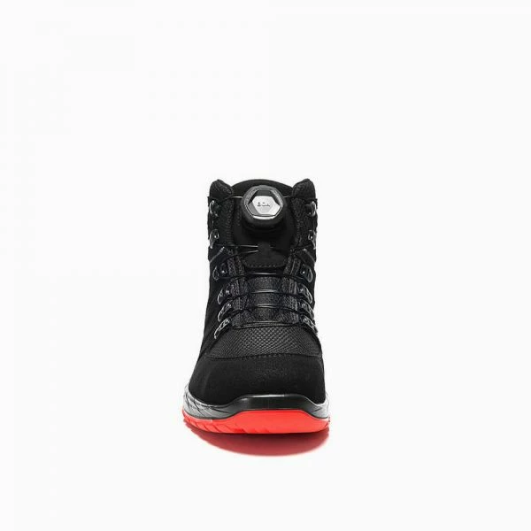 ELTEN zeigt, unter anderem mit dem MADDOX BOA® black-red Mid ESD S3, dass Sicherheitsschuhe ein optisches Ausrufezeichen setzten können und gleichzeitig alle Funktionalitäten eines Schuhes der Schutzklasse 3 erfüllen. Besonders wichtig für einen guten Sicherheitsschuh ist eine präzise Passform. Mit dem BOA® Fit System liegt der Sicherheitsstiefel im Handumdrehen schnell und mühelos perfekt am Fuß. Das Obermaterial aus hydrophobierter Mikrofaser und hydrophobiertem Textilmaterial schützt den Fuß auch an nassen Tagen und ein atmungsaktives Textilfutter vermindert übermäßiges Schwitzen. Der Tragekomfort wird somit besonders hochgehalten.